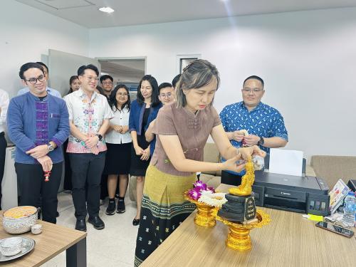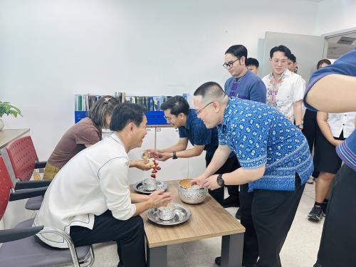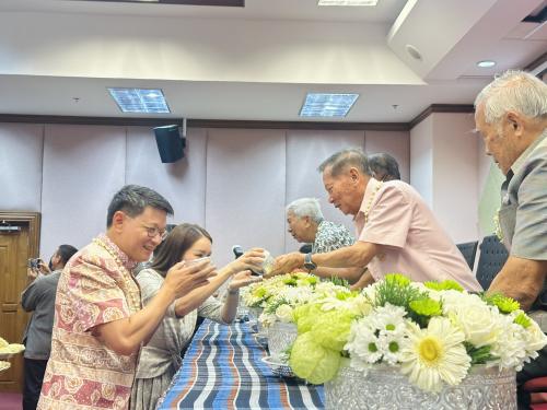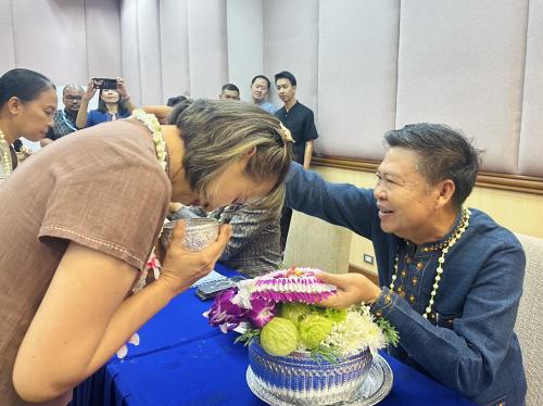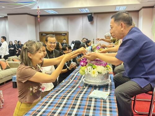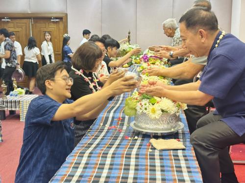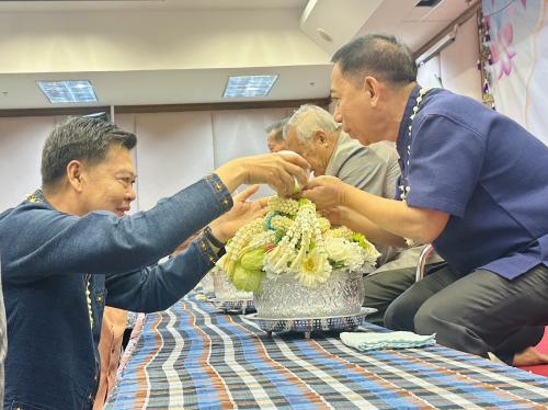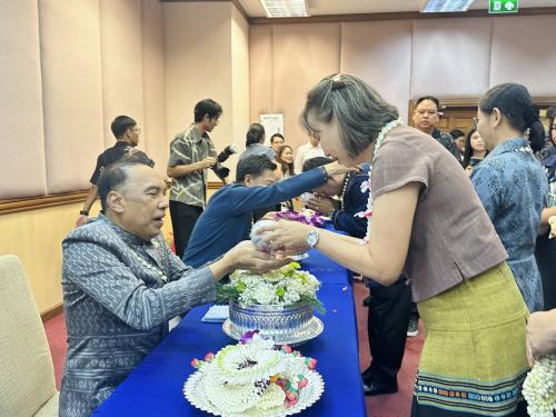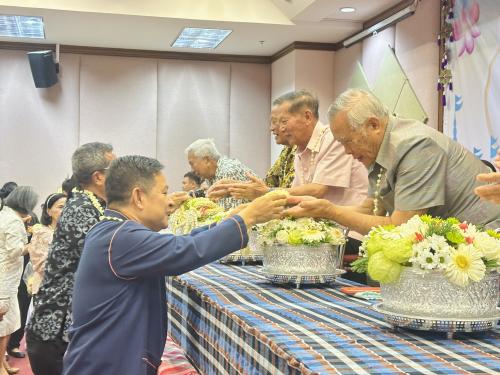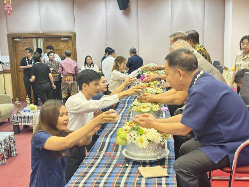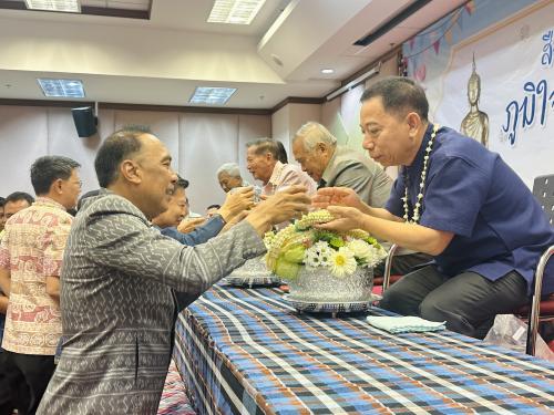 นายสยาม ศิริมงคล พร้อมด้วยคณะผู้บริหาร ร่วมพิธีรดน้ำขอพรมอบพวงมาลัยแสดงความเคารพและความกตัญญู